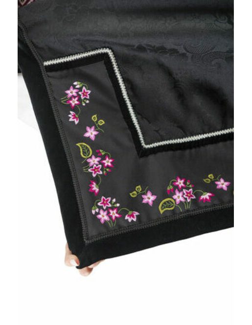 bringa. Broderia er i same farger som broderiet på vest og forkle.Art. 21746-B20-110 Kvit skjorte i bomull med korstingsbroderi i lin på krage, mansjettar og på bringa. Fargane på broderi er i rosa, svart og grønt.